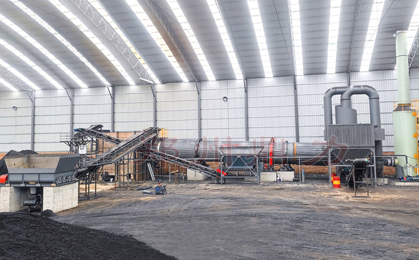 鼎力煤泥烘干机主要由热源、喂料装置、带式上料机、回转滚筒、带式出料机、引风机、除尘器和配电柜构成。